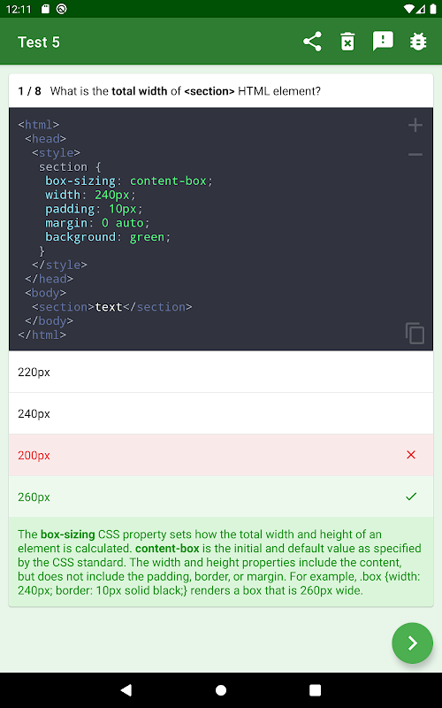 Have fun, learn and test all the fundamentals of Cascading Style Sheets with CSSQuiz! Test your knowledge about all the basic features of CSS. Have fun practicing with the quiz. Further your career - or simply gain a new skills! Good luck!