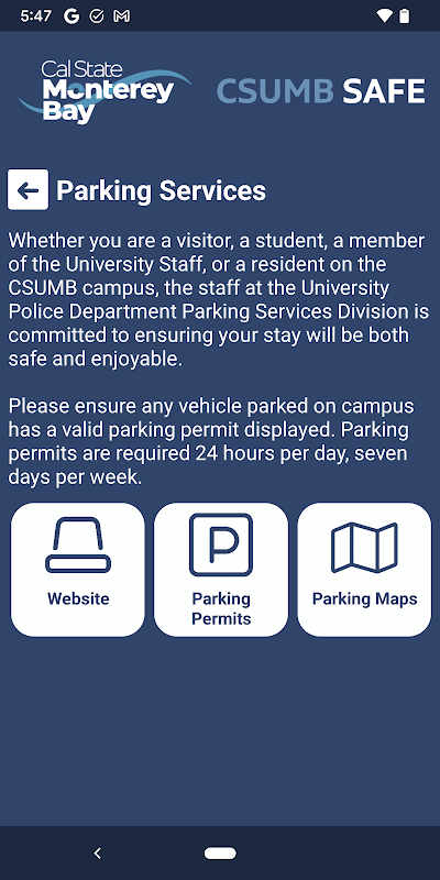 - Mobile BlueLight: Send your location to CSUMB Police in real-time in case of a crisis