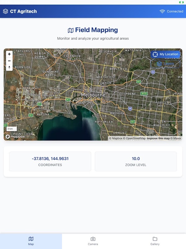 CTAgritech is a robust mobile application designed to empower field workers and agritech professionals in managing and documenting farm activities with ease. With the integration of an interactive Mapbox-powered map, users can track their locations and document field activities in real-time, ensuring precise data collection. The app also features seamless image capture and upload capabilities, allowing for instant evidence recording, whether it be crop growth, equipment usage, or weather conditions. CTAgritech provides a streamlined user interface with CT branding, making it easy for users to stay organized, improve the accuracy of their data, and enhance their productivity directly from their mobile devices. Whether you are managing crops, conducting inspections, or tracking field operations, CTAgritech is your go-to solution for efficient and effective farm management.