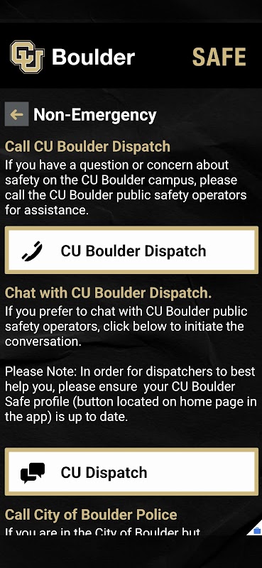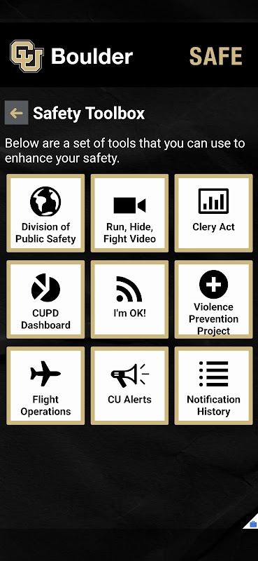 - Stay Informed: Receive vital Safety Notifications from CU Boulder Police during emergencies and easily find Support Resources.