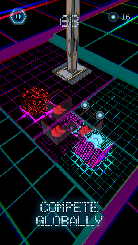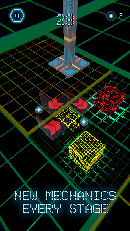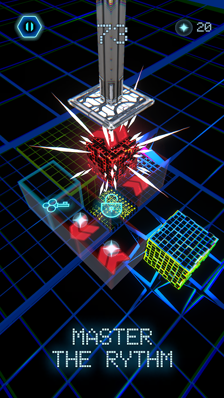 Listen to the driving techno soundtrack. Watch the cube. When it's perfectly aligned, TAP the screen. That's it. Miss the beat by a fraction of a second, and your run is over. Survive 10 presses to advance to the next stage, where the music intensifies and new mechanics are introduced. Adapt fast or fail.