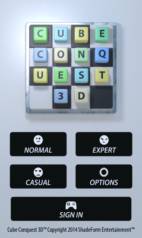 •Quit a game in progress at any time. Cube Conquest 3D will automatically save your progress to be resumed later.