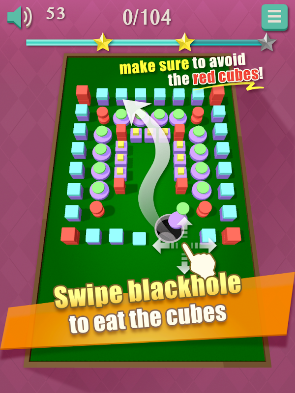 Swipe your finger to make the black hole eat the cubes.