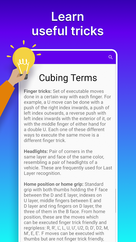 Do you need clarification on Cube notation? Not anymore! The Cube Solver App provides clear explanations of notation and definitions for every algorithm and stage of the solution. Learn the language of cubing and unlock the secrets of CFOP with easy-to-understand explanations and helpful examples.