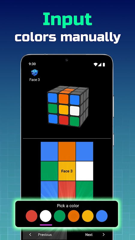 - Manual Input: Easily input colors using our intuitive color picker for precise solving.