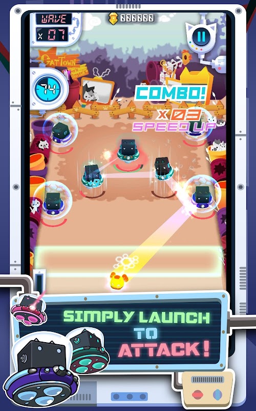 Build your army of CubeCats and join the fight against an intergalactic fleet of evil alien cats to save the world! Use your CatBalls to smash your enemies, bounce off walls, and block bullets. Develop and hone your CatSkills to strategically defeat your feline foes. They will offer a wide range of tactics from Pyro Strikes and Absolute Zero Attacks to an Electromagnetic Vortex in your pinball brawls. Switch between different CatBalls mid-play, but be careful how you use these powerful skills as they can and will backfire if not used correctly!