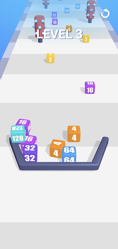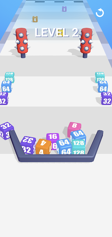 Swipe to move the horseshoe and combine the cubes. When two cubes with the same number touch, they merge into one.