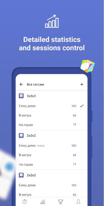 The timer allows you to train in solving all official disciplines and compete with friends. For each solve you can see a scramble draw to make sure that you have sramble the puzzle correctly.