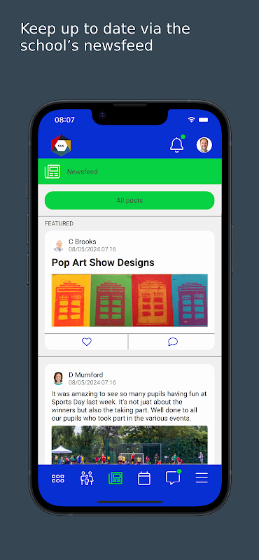 • Keep up to date with your children’s activities via the Newsfeed.