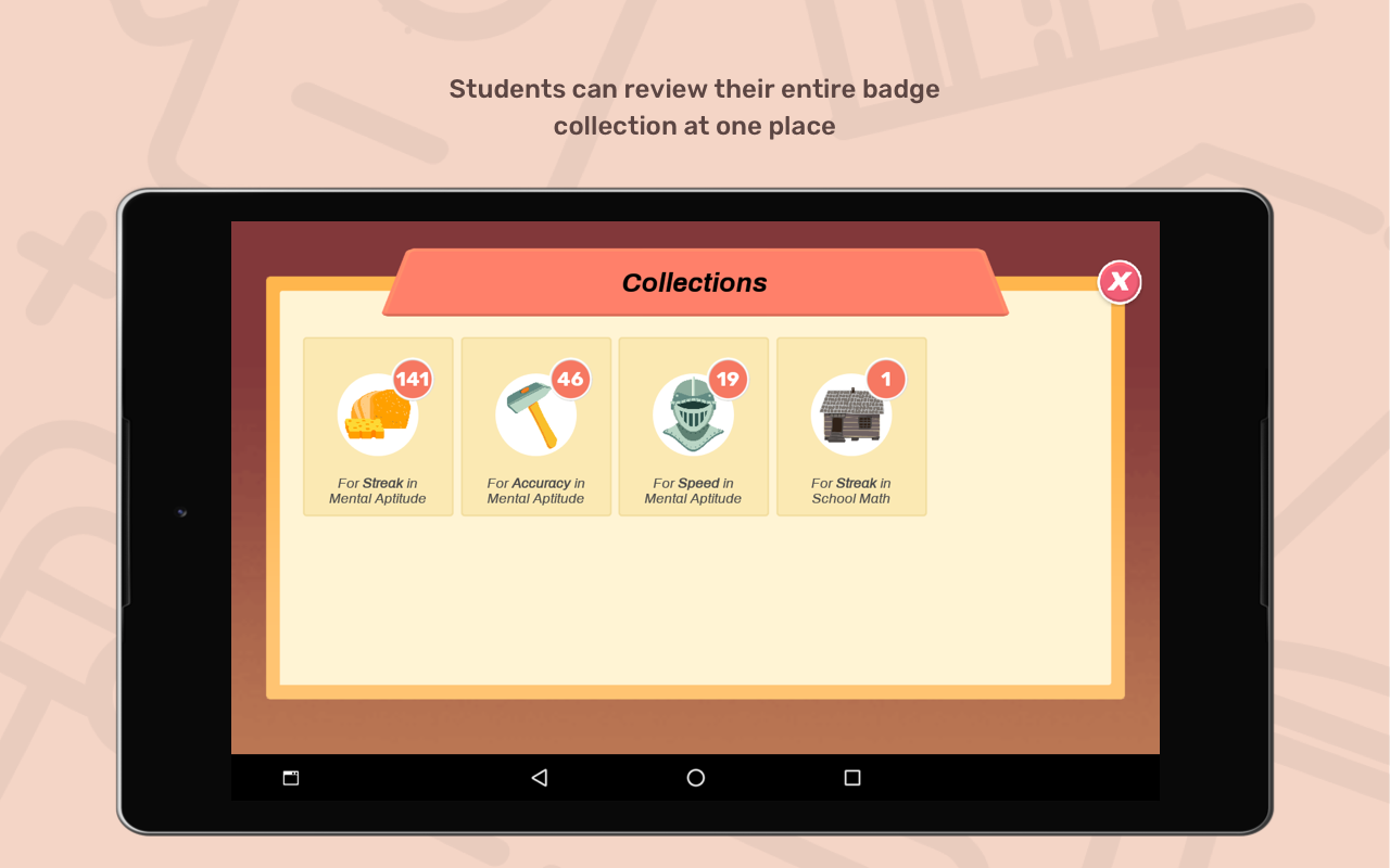 This part of math is structured as a series of game-like tab based exercises that the child has to master. Mastering each skill requires increasing level of proficiency.