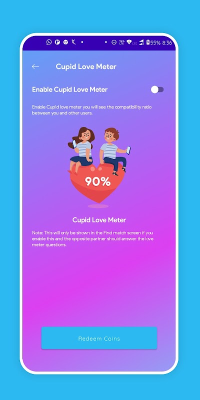 Cupid Coins are those special reward points that the user is rewarded with on choosing to watch small advertisements.