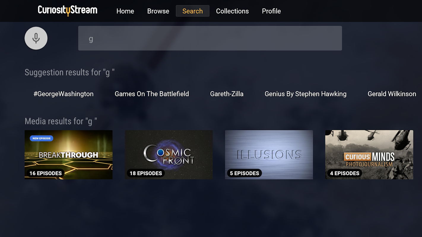 By downloading this application, you agree to the CuriosityStream Terms of Use and Privacy Policy, located at www.curiositystream.com.