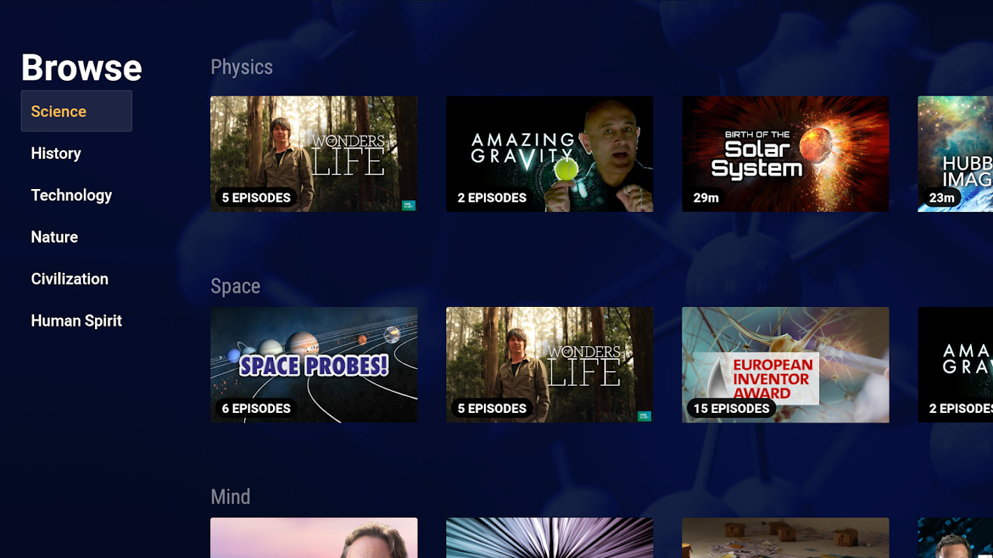 Stream HD documentaries on a wide range of subjects, from science to history.
