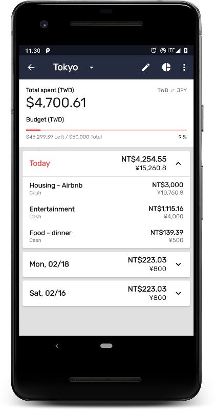 2. If you want to record every expense for your travel, you could use "Accounting for travel" feature. CURRENCY support you to create travel for recording your expenses. You could look up top expenses and chart by expense type.