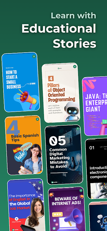 Study with over 5,000 free online courses with certificates, video or audio lessons, thousands of exercises, AI-powered study calendar, educational stories, AI-powered tools to boost your career, and much more.