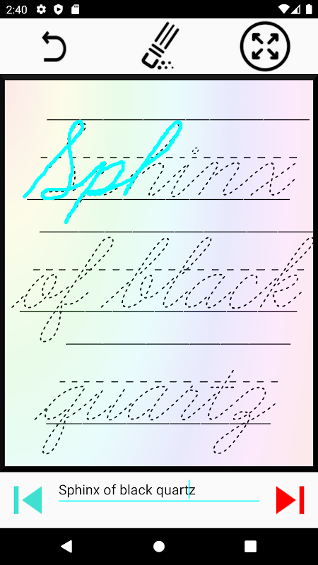 Great combination of learning and practicing professional Cursive Handwriting on a smart device.Practice makes handwriting perfect and this is the perfect app to practice and learn the art of cursive writing.