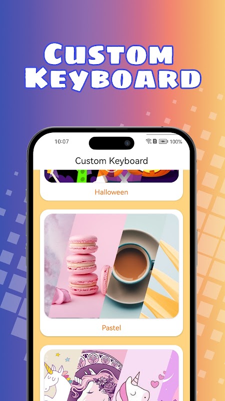 👉 The application provides a variety of theme choices. Whether you like Abstract theme, Christmas theme, Pastel theme or Unicorn, you can find the theme that suits you best here. Ensure that users can find their favorite keyboard style.