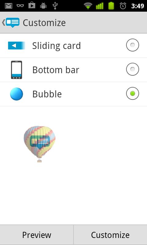 Shows incoming notifications on top of your screen. No need to open the notification bar.