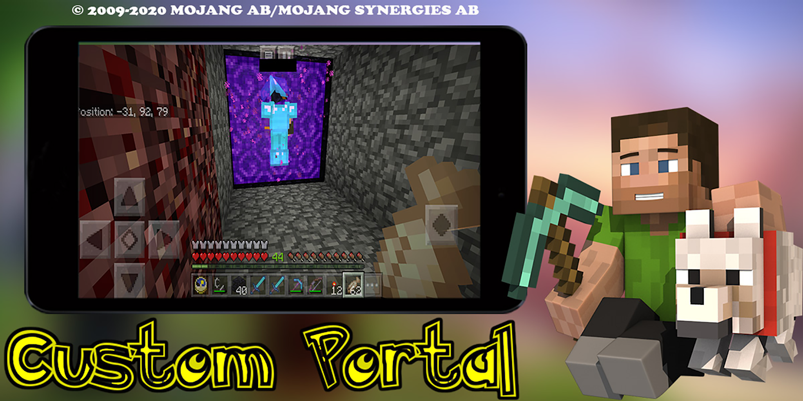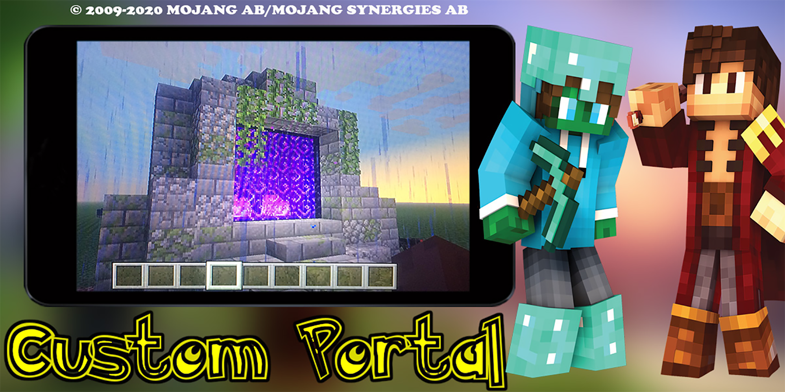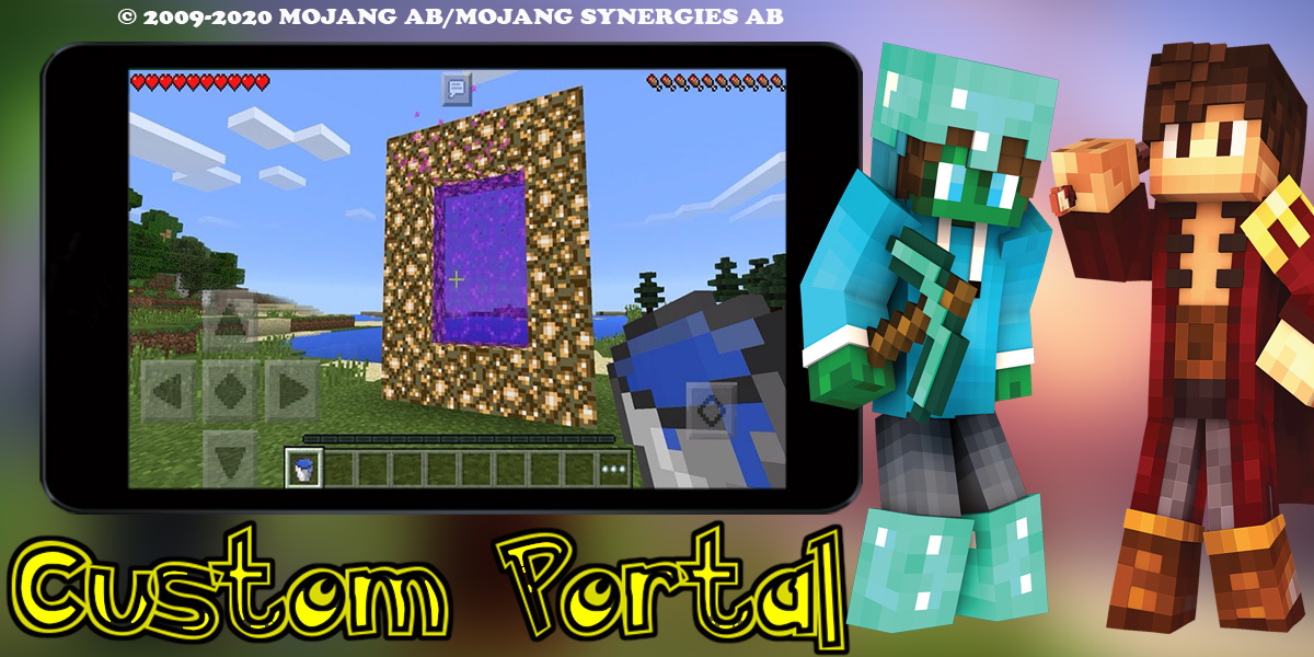 1. This app add such mods, maps, skins, textures for mcpe as: Custom Portal Mod, Mega TNT Mod and Rainbow Nether Portal Mod