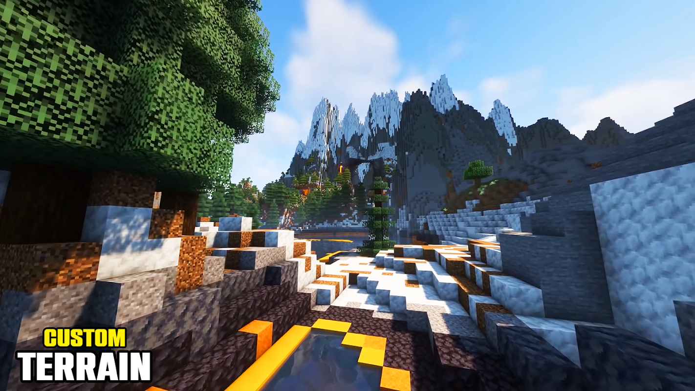 Custom Terrain is a Minecraft mod/map that revamps the terrain generation to look more like generated landscape than a bunch of individual biomes. Installing map Minecraft terrain maps, you will get access to many new landscapes and biomes.