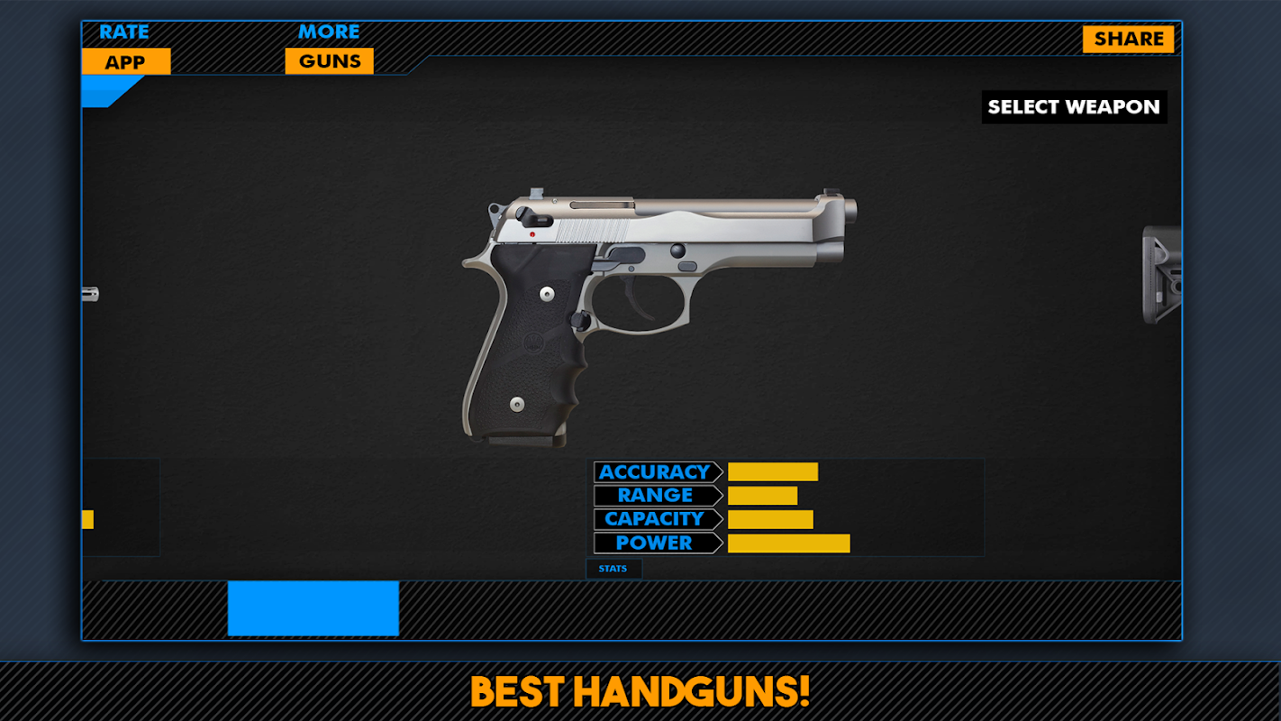 This is not toy gun builder it’s a real gun builder with real gun parts that existing! With high-resolution graphic you can zoom gun and see the details. Whatever you choose in build options will be saved on your device so you do not have to worry about saving. In the options you can choose how to shoot with your gun, select slow or normal motion, chose unlimited ammo or the normal number of bullets within magazine. It’s the same for vibrations, smoke effects and screen rotation. Share with other people this simulator game, show to them virtual guns on your phone and have great time with best gun app.