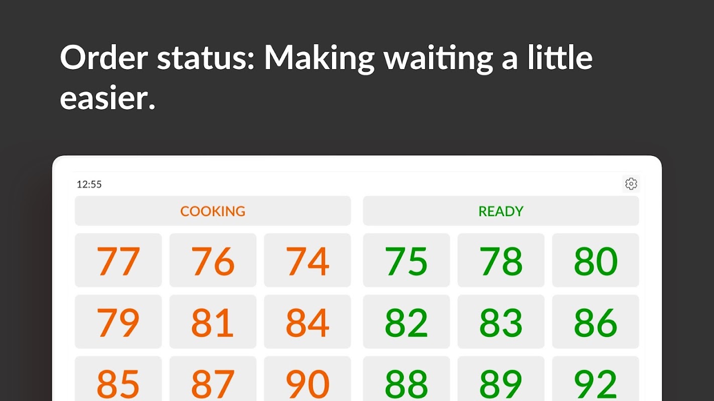 It is a digital screen software that displays the status of orders on a smart TV notifying customers when to pick up their orders. Once the order is ready, the multi-language feature enunciates the order number for customers.