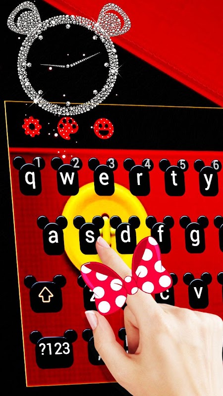 Why don't you customized your phone just the way you like and try different “ cute Mick keyboard” themes for girl of style and fashion. Beautifully designed and easy to use, this theme changer will change your life and turn it upside down whenever you take out your mobile gadget to text smiley emoji faces to your bffs and tell them all about your new keypad style. We know how much you like cute Micky Mouse Bowknot themes or any other color of glowing “keyboard with emojis” so you don't have to worry at all, the skins are set up and ready to go! Download and see it for yourself, your new keyboard keys will shine like the finest Mouse Bowknot powder of beautiful cute Mick color. Install cute Mick Mouse Bowknot Keyboard free of charge!