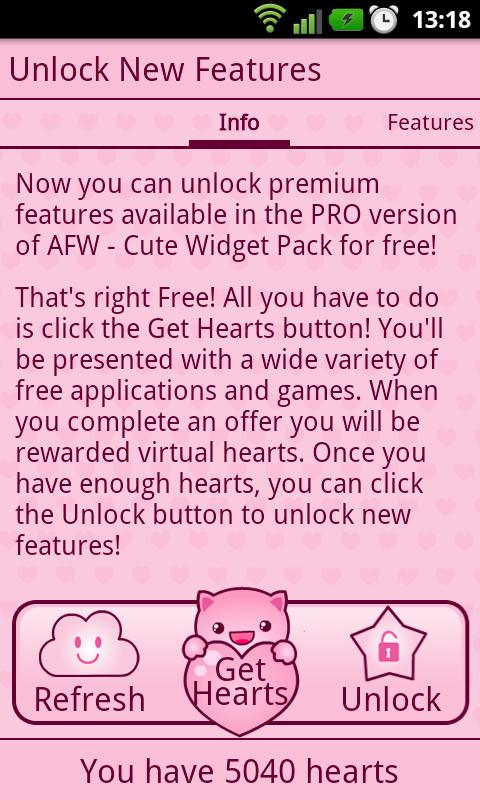 (You need to complete offers such as downloading or playing free games, in order to earn points and unlock these features! If you want these features right away, please consider buying the Pro version. For more information tap the My Hearts button.)