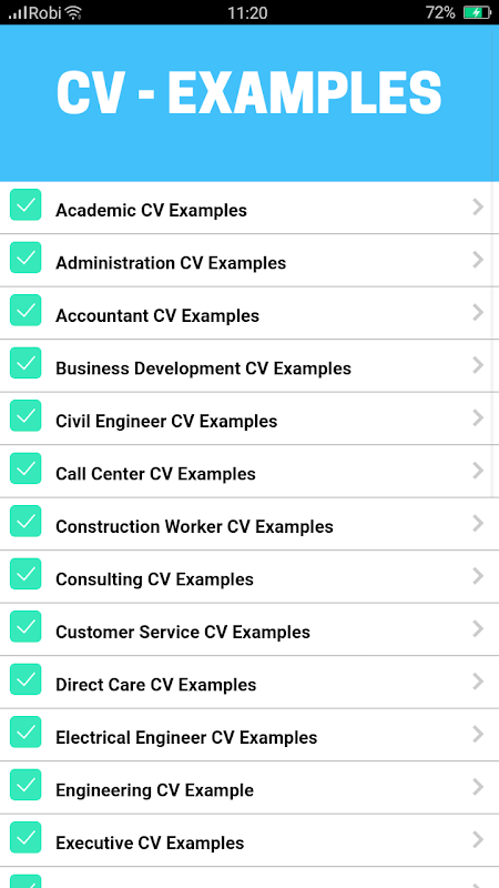 CV Examples is an app that will help you find and apply for a new job. There are Professional CV Templates, Application letter sample and application letter format and much more besides.