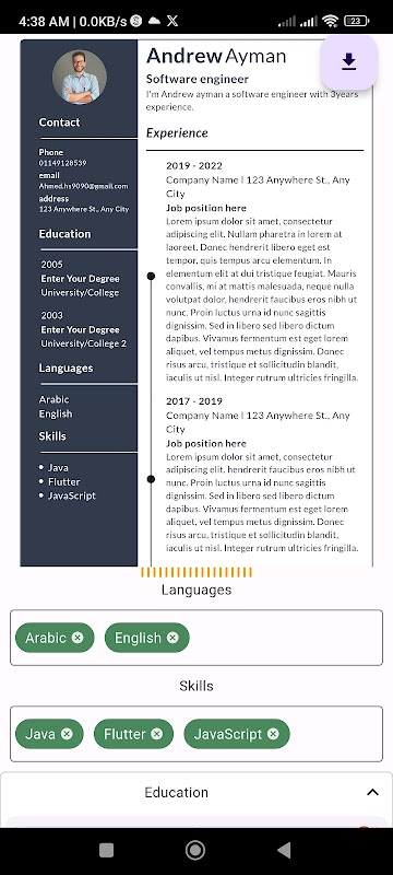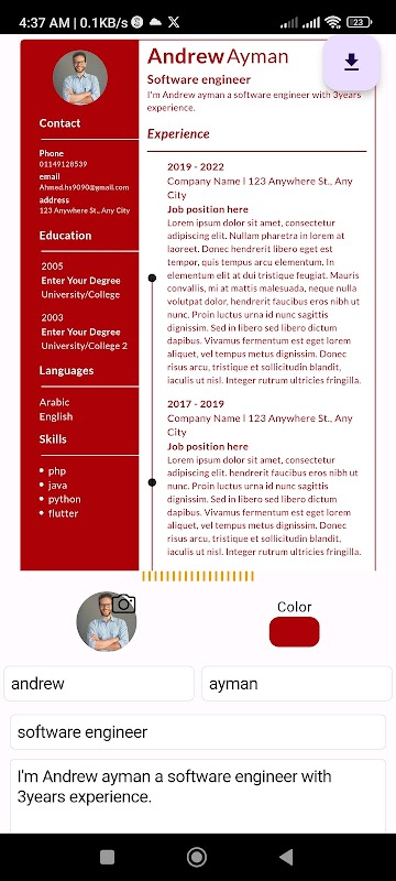 Efficient app for creating professional resumes and CVs, save as (image or pdf).