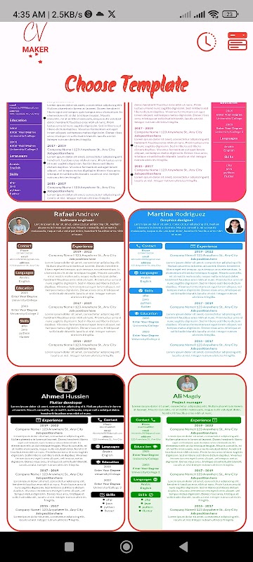 "CV Maker" is the ultimate tool for crafting polished and effective resumes for both employers and individuals. With an extensive library of professionally designed templates, this app offers unparalleled versatility to suit every career path and personal style.