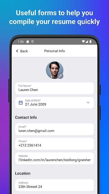 Upload a professional headshot and add it to your curriculum vitae with our resume creator.