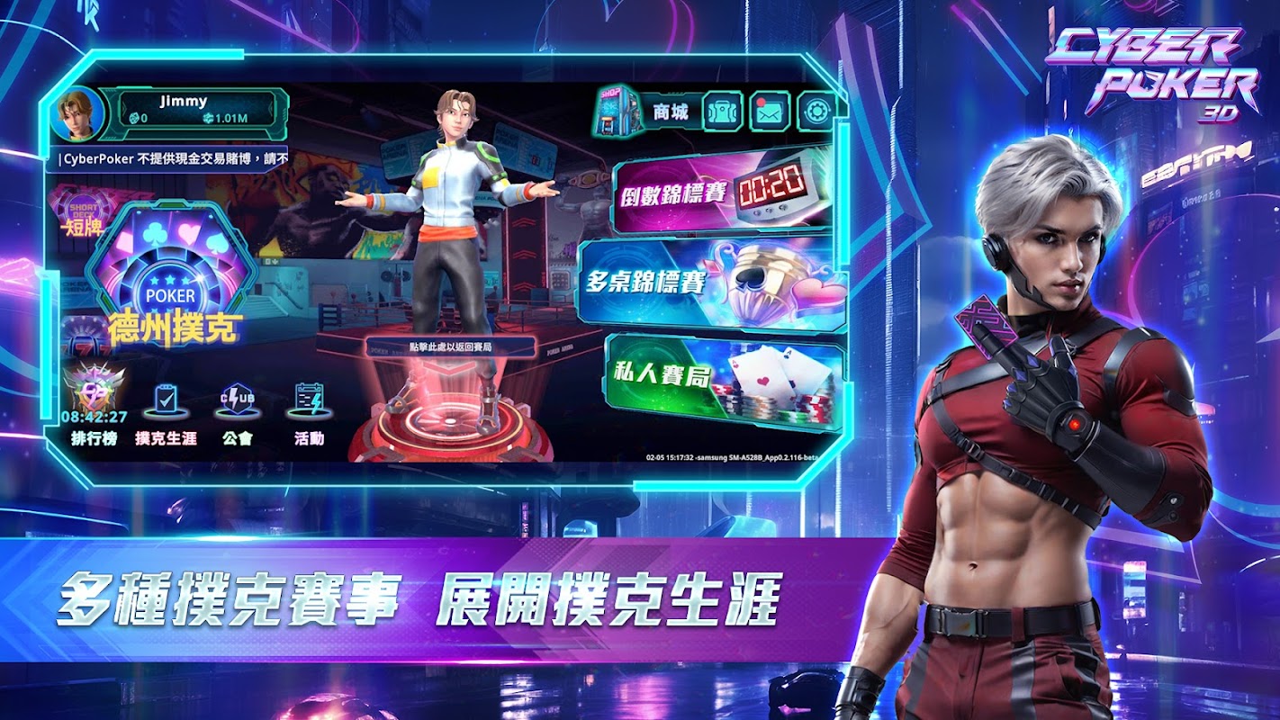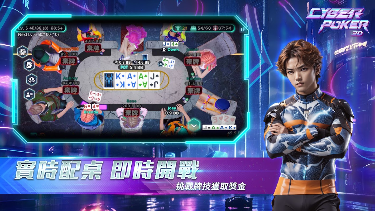 CyberPoker is the first 3D e-sports poker mobile game with brilliant special effects and futuristic world elements.