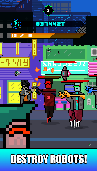 Upgrade your gun. Destroy all robots. Unlock new locations