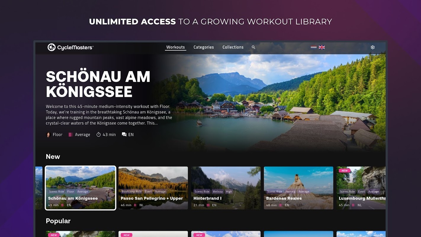 The CycleMasters Studio app is designed for professional use. With a clear layout, themed collections, and a continuously growing library, your offering stays fresh and engaging. A separate admin environment gives you full control over settings and usage – no member login required.