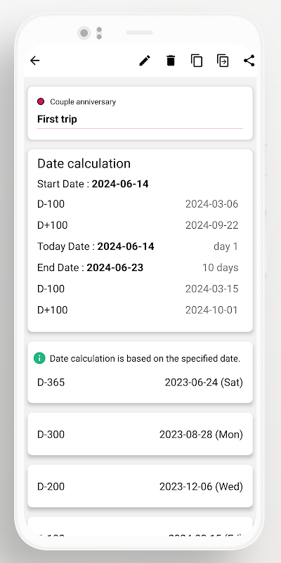 • D-day automatic calculation 100 days, 200 days... 1 year, 2 years... D-day automatic calculation