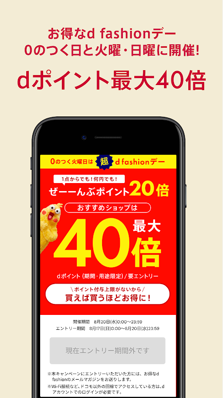 This is the official app for Docomo's online fashion shopping site, "d fashion." We carry over 4,000 popular brands, including Ships, and you can use d points to pay!