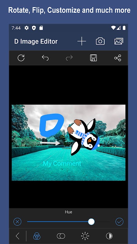 - D Image Editor provides an option to perform image transformations such as rotate and flip.
