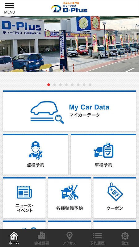 D-Plus公式アプリでは、お得な情報やクーポンのお受け取りから、車検・点検等のご予約など様々なサービスが可能となっております!