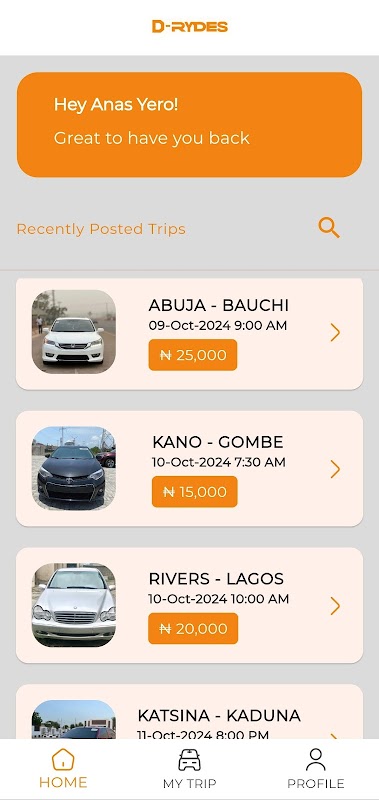 D-rydes is an inter-state travel App that connects vetted car owners with passengers and parcels going towards similar destination