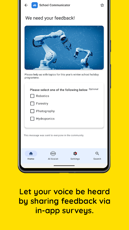 The d6 School Communicator is a stand-alone application designed to simplify school-parent communication. The d6 School Communicator includes all the information an engaged parent would need at the touch of a button. You may personalise the information you would like to receive, giving you the latest information relevant to you.