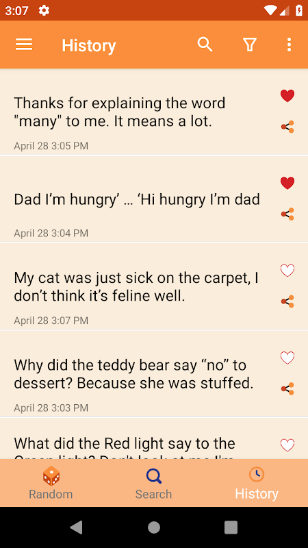 3. See joke history or add them to your favorites