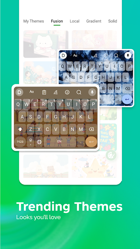 • Choose from trendy keyboard themes