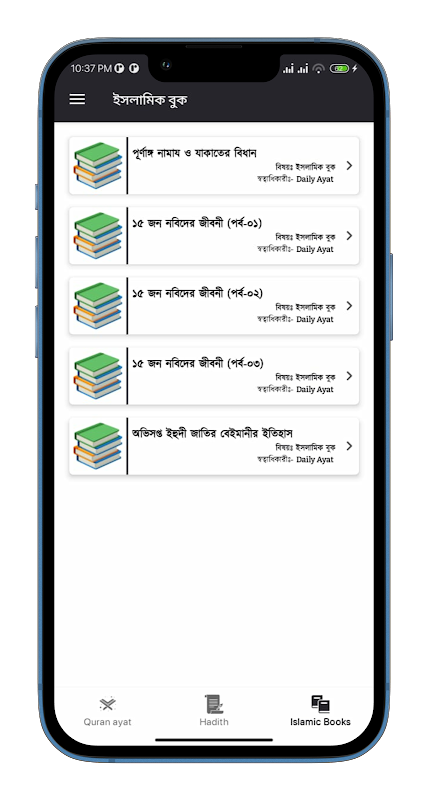 The Daily Ayat app is a comprehensive Islamic resource that offers a rich collection of Islamic books, making it a valuable tool for anyone seeking spiritual guidance and knowledge. With its user-friendly interface, users can easily access and read a wide range of Islamic books on various topics. The app also provides a powerful search feature, allowing users to find specific Ayat, Hadiths, or Islamic guidelines based on keywords, making it a convenient tool for research and exploration.