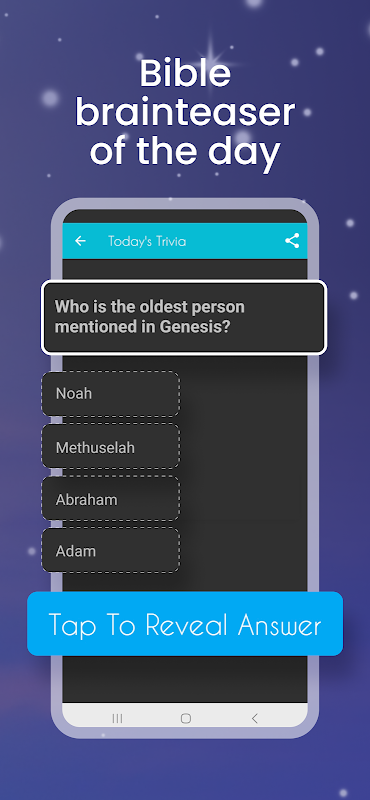 • Daily Bible trivia to test your knowledge and help you memorize Scripture