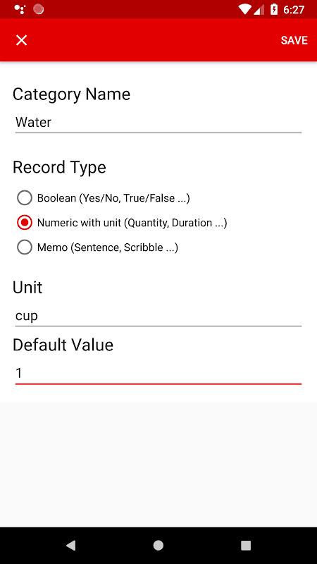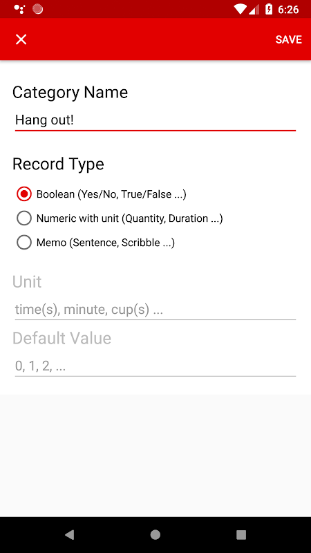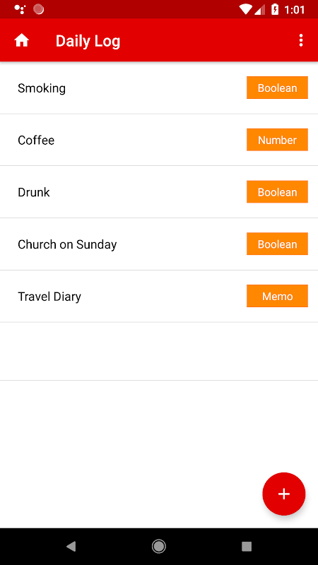 Long click (Boolean) or just click (Numeric / Short message) to log the day.