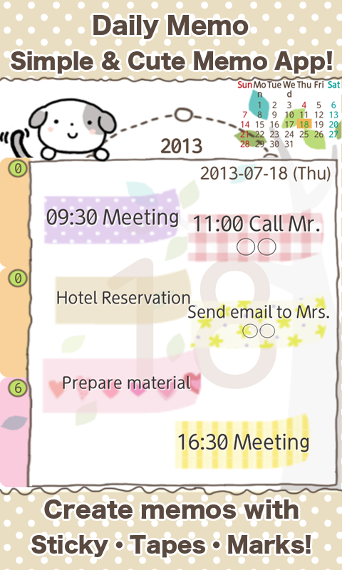 Simple & cute! Create memos with sticky, tapes and marks!