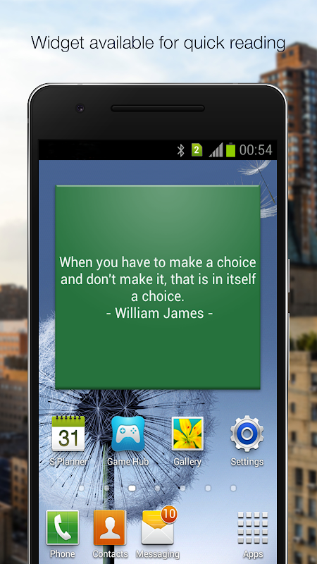 Version 4: We have revamped this App from inside out to make it the best quote App in the store. Now you will receive a quote daily on your mobile. NEW FEATURES: 1. Handpicked awesome quotes for 365 days of the year. 2. Notifications for Quote of the Day. 3. Quote of the day Widget. 4. Save quotes in your Favorites folder for later review. 5. Share pictures of quotes on Facebook, WatsApp, Email and others Apps. 6. Fixed frequent Ads