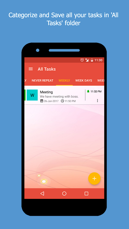 5 - If you have set reminder, Daily Schedule Planner will notify your at the specified time.