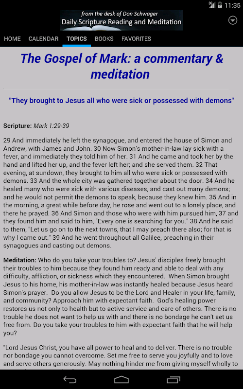The daily meditations displayed in the app are also available online at http://www.dailyscripture.net.